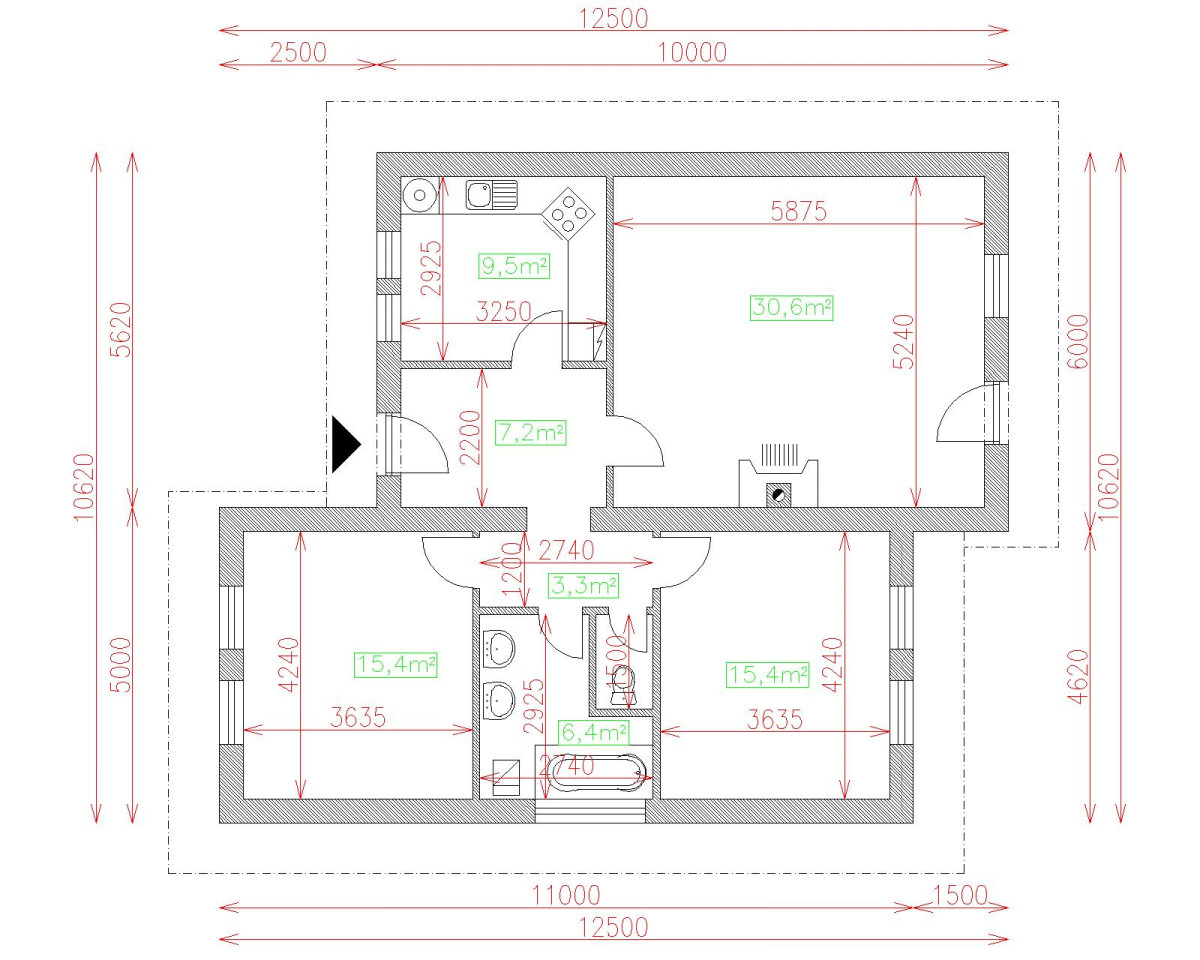 | Celková obytná plocha | 61.4 m2 |