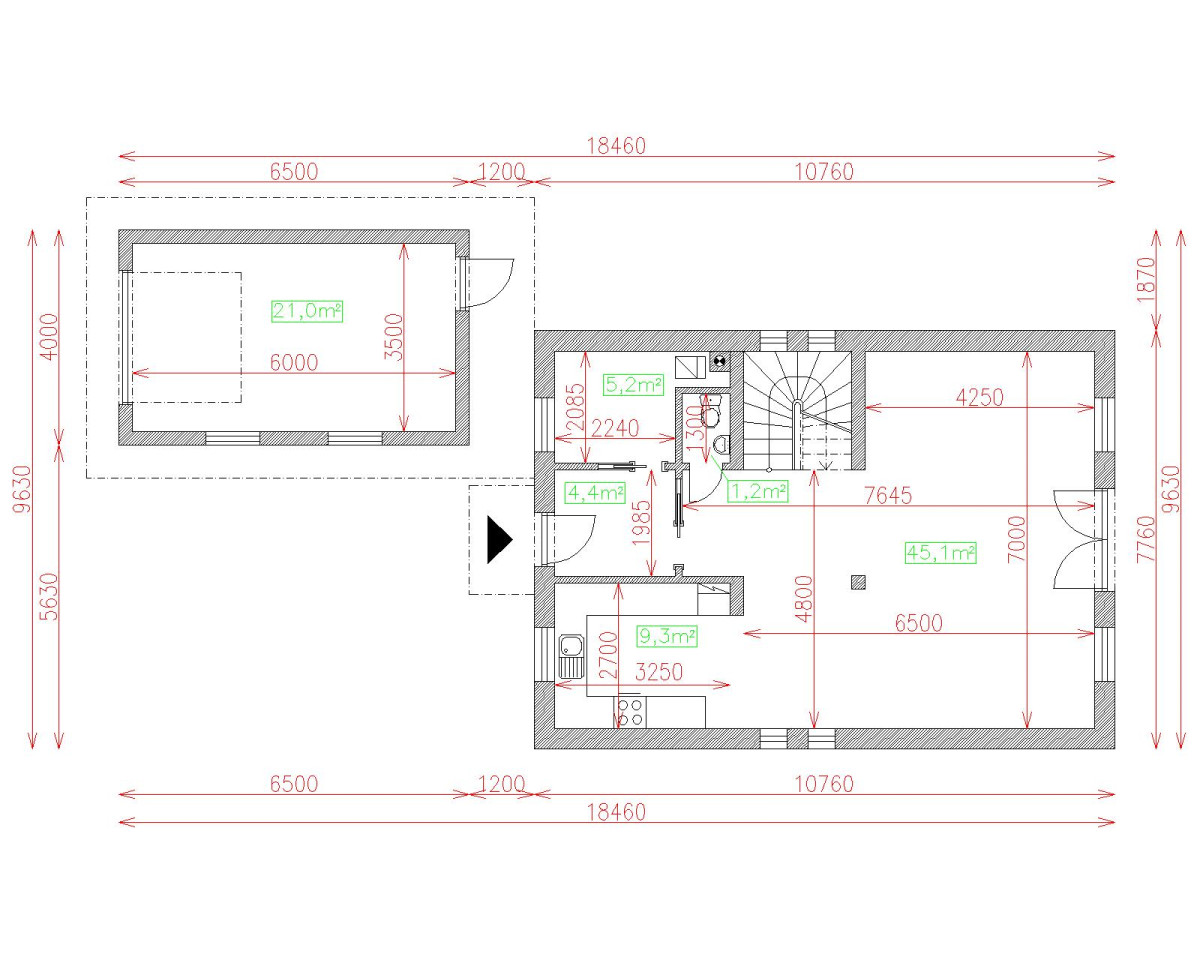 | Výška hrebeňa strechy | 7 |