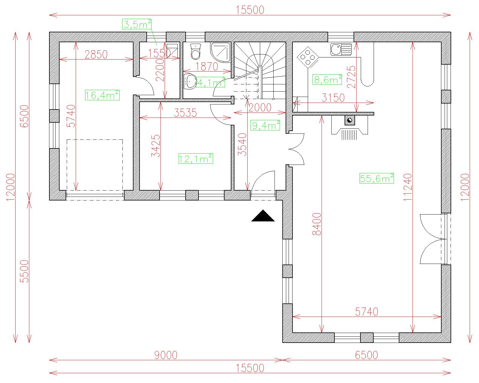 | Výška hrebeňa strechy | 7 |