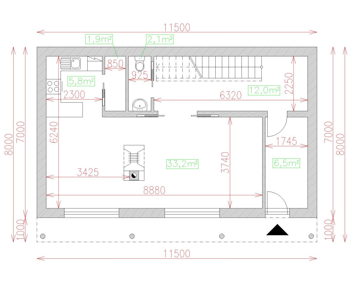 | Výška hrebeňa strechy | 6.9 |